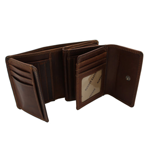RE Leather Trifold Wallet with Flap