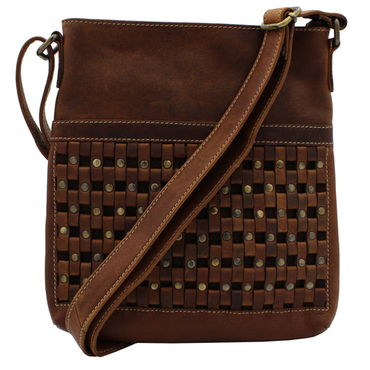 RE Midsize Leather Woven Purse (10"x 11"x 2.5")