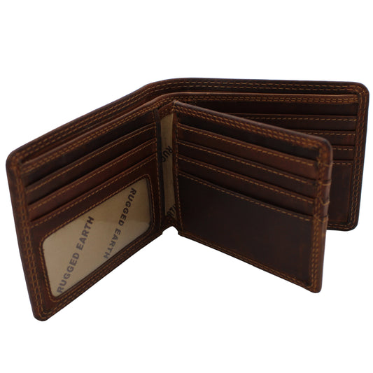 RE Leather Wallet - Bifold with Top & Mid Flap