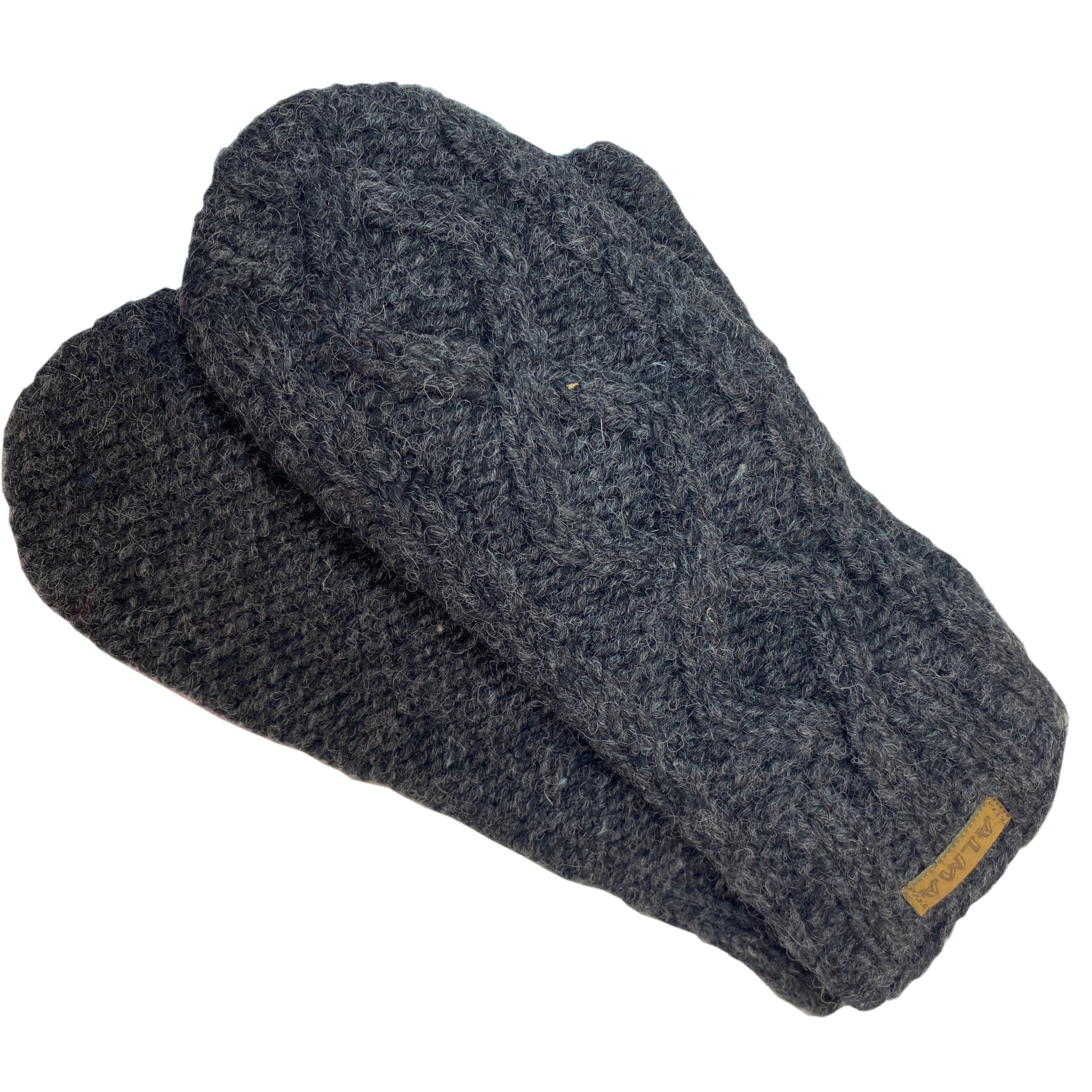 Cable mitts from Alma. 100% wool with polar fleece lining for added comfort and warmth.