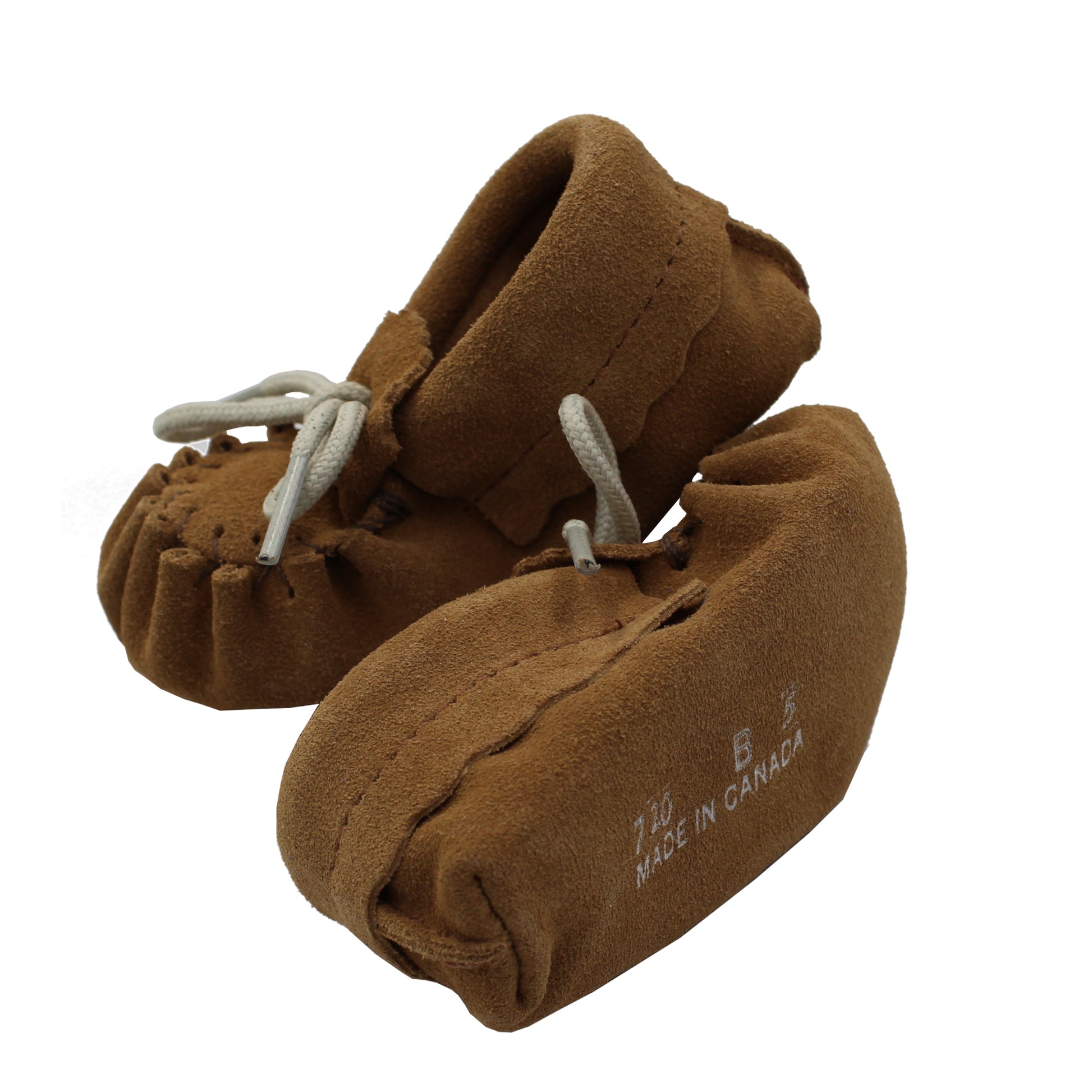 Suede leather moccasins to fit the tiniest feet. Soft suede leather with lacing. Unlined.