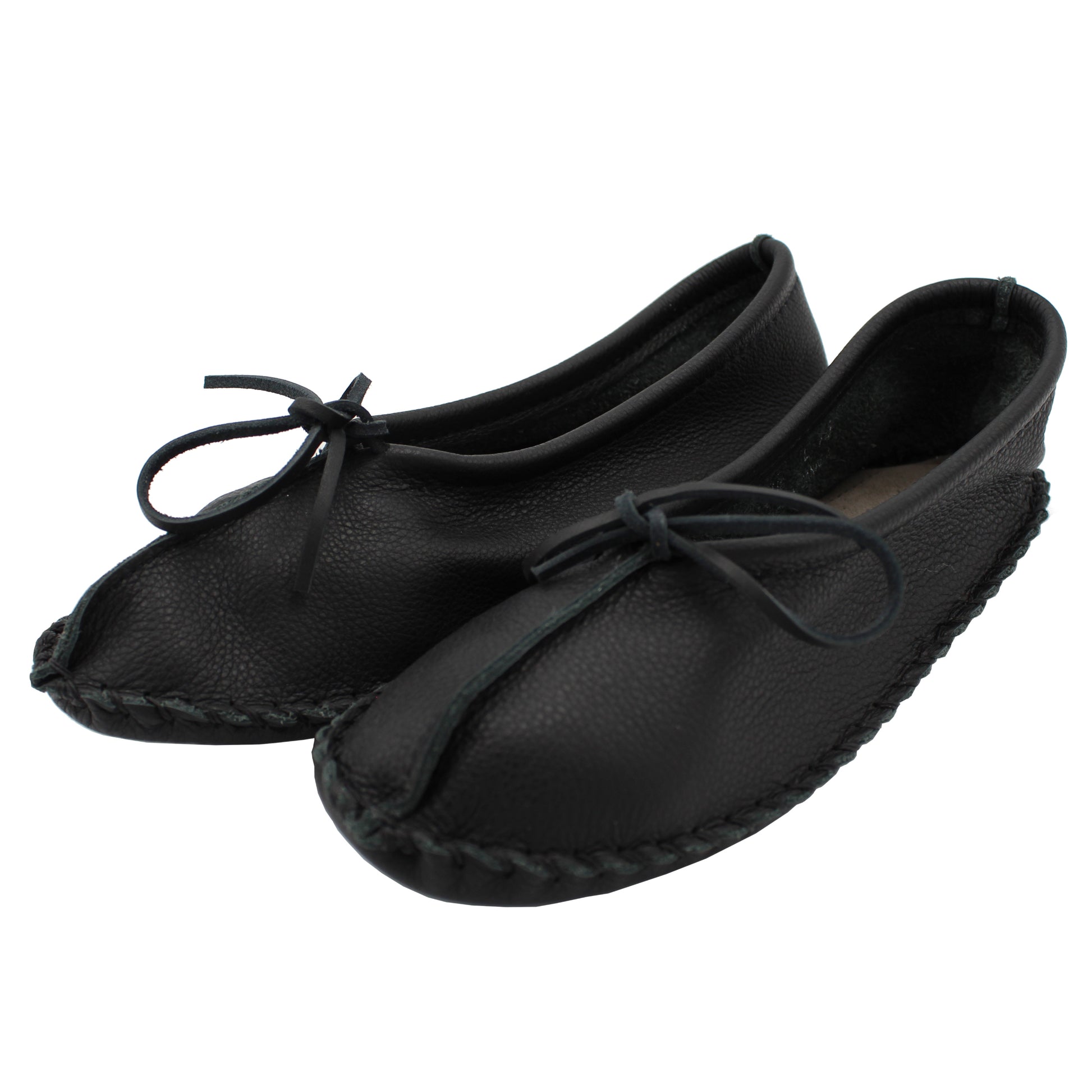 A small, sleek slipper with a padded sole. These ballerina style slippers are made with genuine soft cowhide leather. Leather ties to adjust fit. Light and flexible, convenient for travelling.