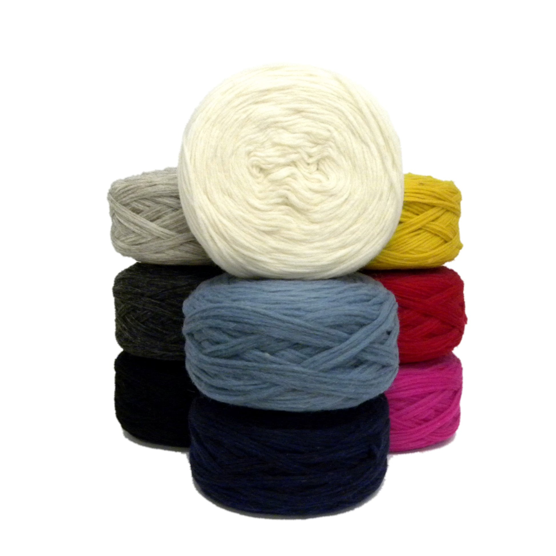 A bulky five strand yarn that can be knit into soft, heavy weight items or use cut strands for thrummed mittens. Ideal for Cowichan-type sweaters, hats and mitts. 100% pure wool. Sold in 227 g (8 oz) cakes. 141 m (154 yds).