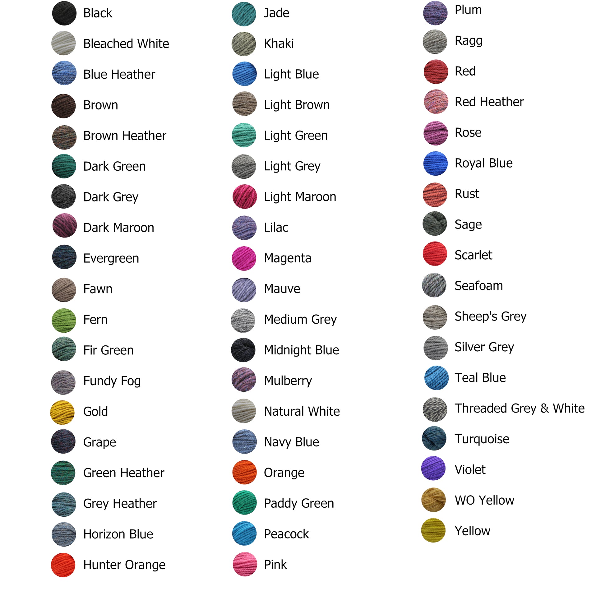 Colours shown in basket are: dark green, light grey, violet, fundy fog, turquoise, navy blue, red, gold and threaded grey & white. Complete colour list shown in second image and drop down box.
