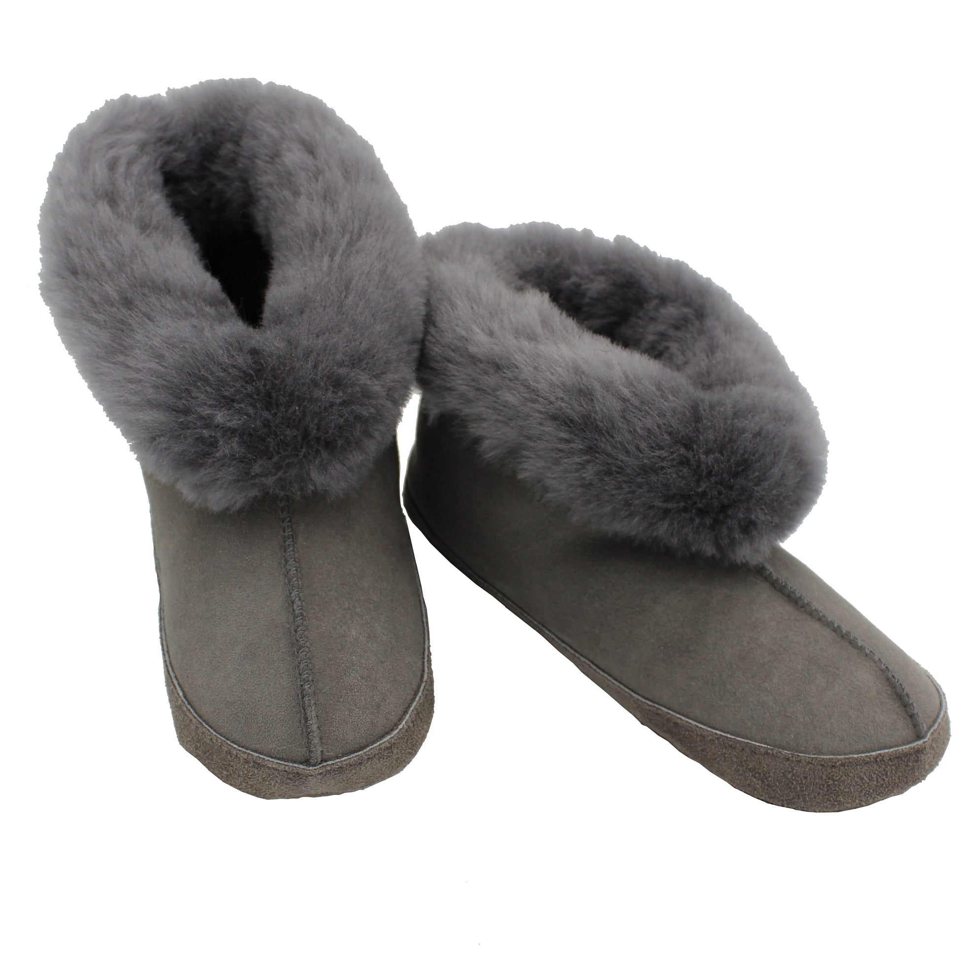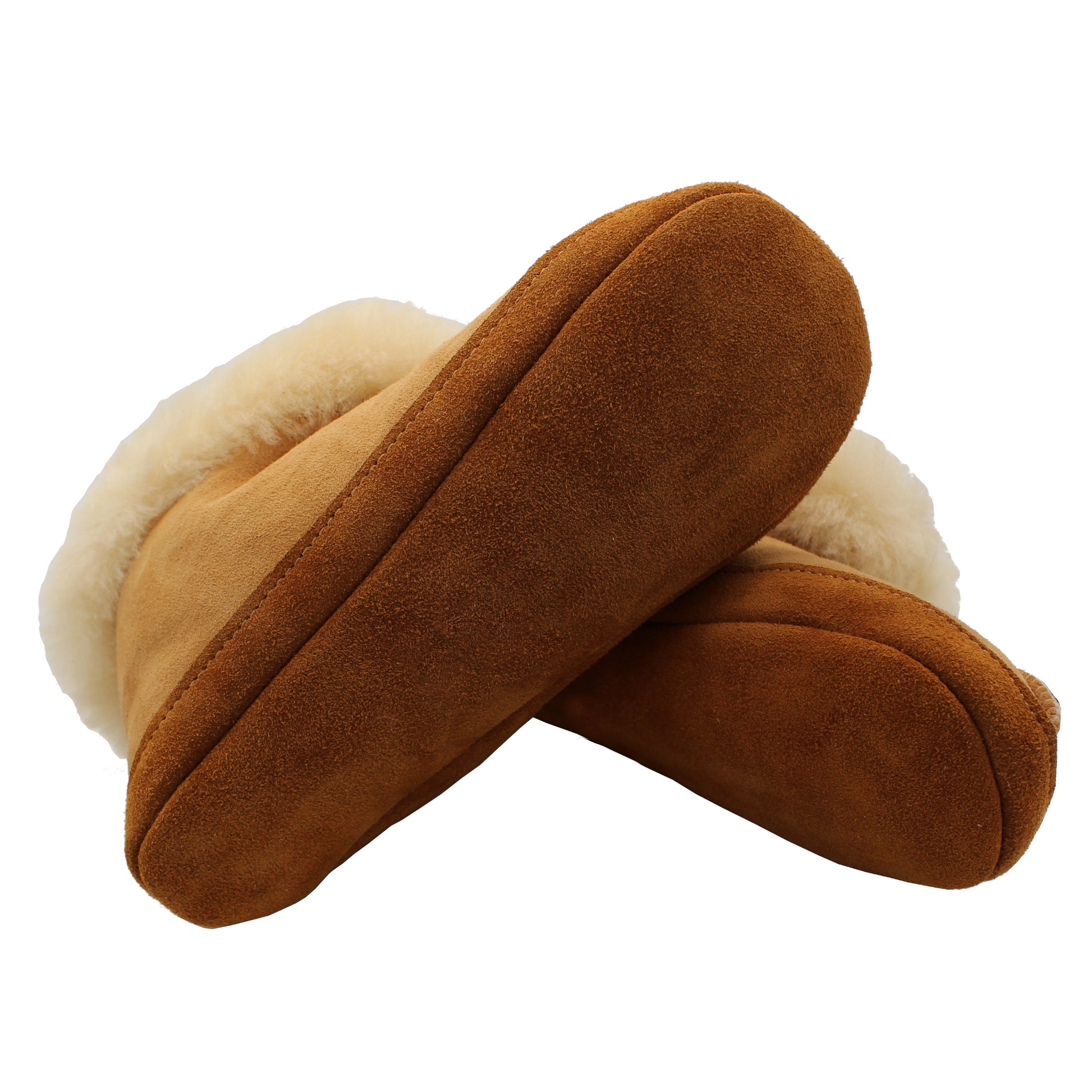 Ankle height slippers made from genuine sheepskin. Suede outside with soft, dense shearling inside delivers natural comfort and warmth. Split leather suede soles for strength and long-lasting wear. Dense shearling insoles provide luxurious comfort. Find out for yourself why these slippers are our best seller! Care instructions here.
