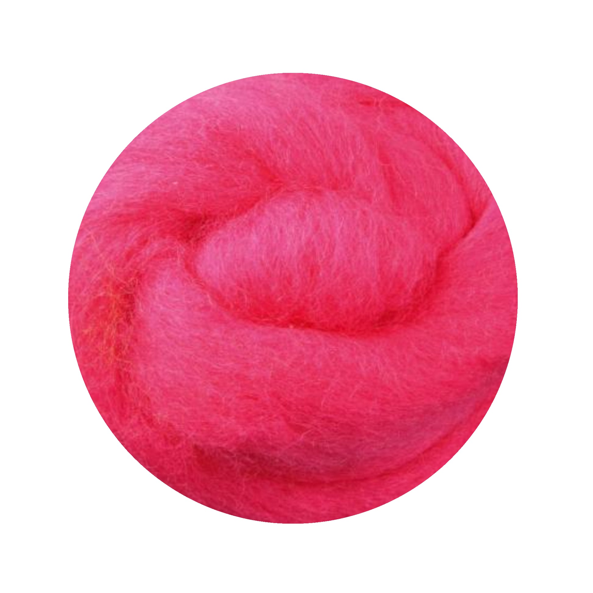 Wool washed and carded into a thick rope ready for spinning and dyed. Comes in a variety of fun colours. Corriedale will bulk after washing and has good elasticity. It is ideal for baby wear, woven, knitted, crocheted or felted garments.