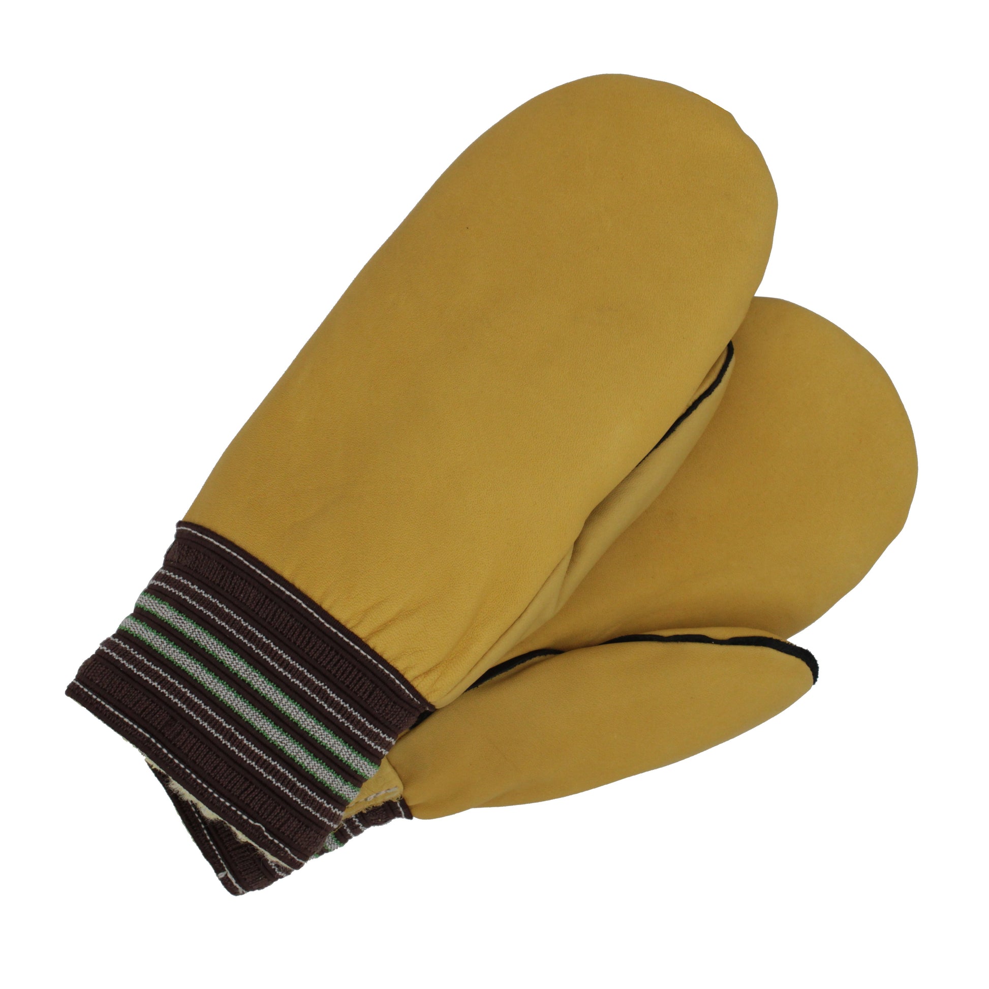 These leather mitts are referred to as Garbage Mitts because this style was made popular by garbage collectors. They are a tough mitt perfect for for all kinds of outdoor winter activities. The outer shell is made from genuine cowhide leather and is completely lined with thick polyester/acrylic pile. The elastic 'huggit' wrist design keeps the snow and wind out for overall warmth.
