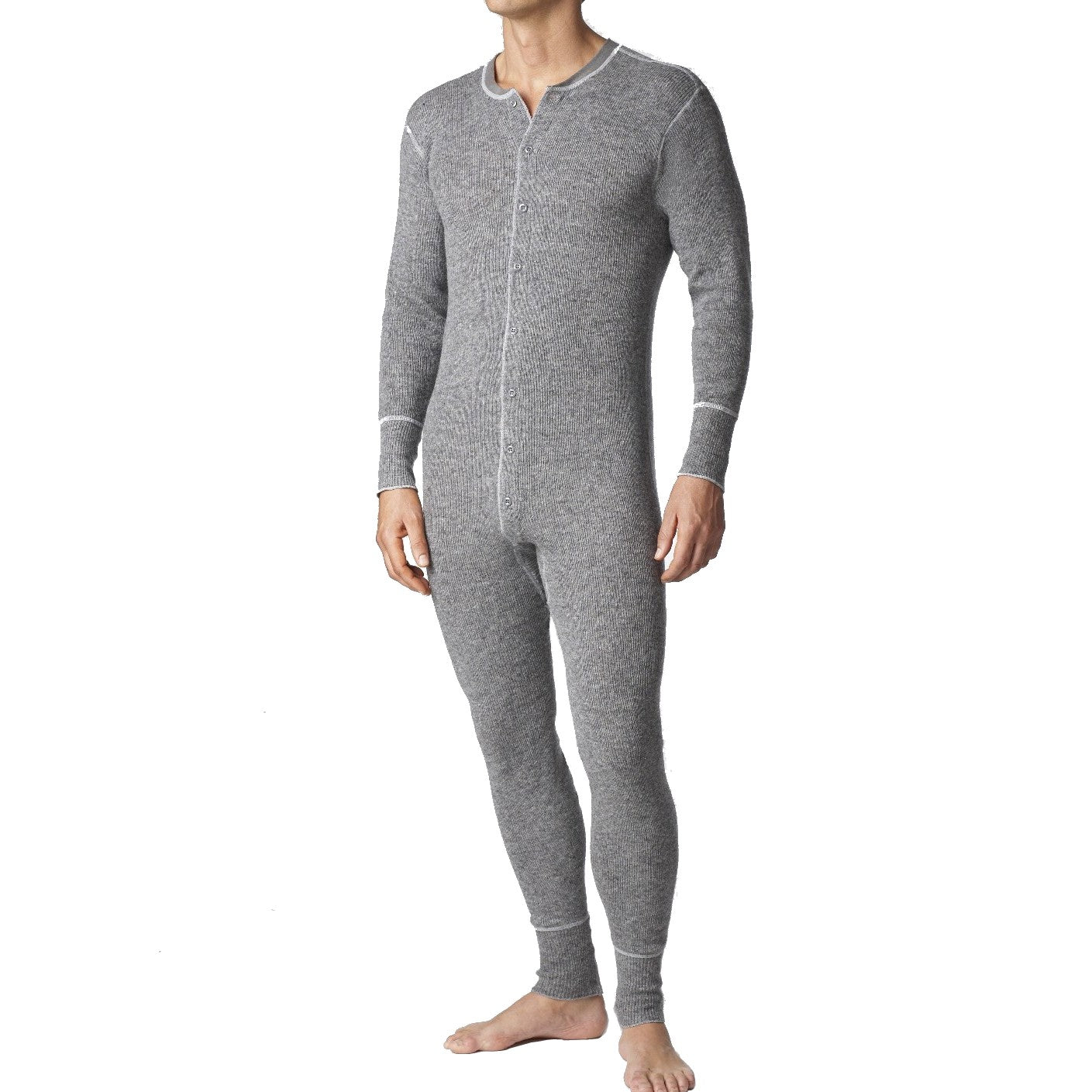 Woolen underwear made in Canada by Stanfield's. Designed for absorbency, comfort, warmth and long lasting wear. Generous sleeve and leg lengths. Ribbed cuffs and collar. Full button front. Military insert shoulders. Rear trap door with button closure. Machine wash and dry. 80% wool, 20% nylon. Machine wash in lukewarm water, tumble dry low. Do not bleach.