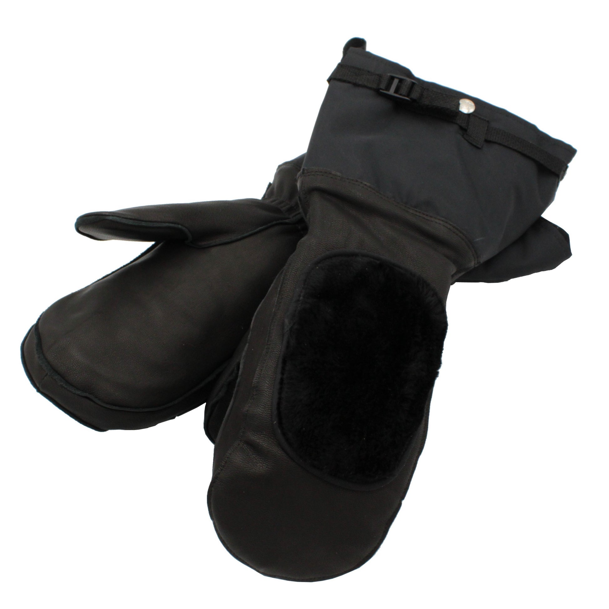 Military issue mitts offer extreme protection against the cold. Genuine leather outer shell with cheek warmers on the back of each hand. Flared nylon cuffs have domed fasteners to lock the cuffs securely to the removable layered liner. Liner is nylon twill quilted with thermal insulation and spun cotton faced with wool serge.