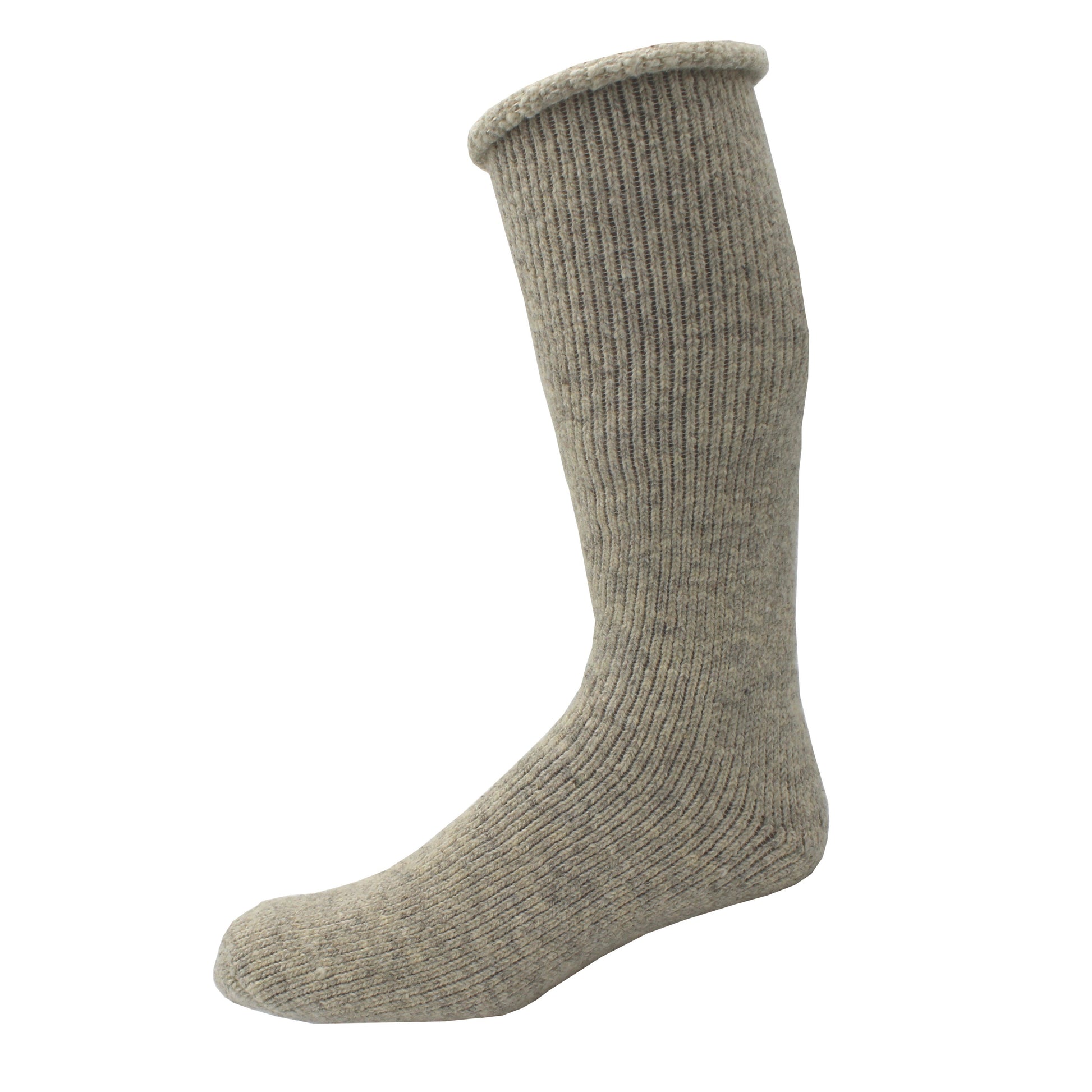 Pre-shrunk wool is knit into deep terry loops with extra high cushion for added warmth and protection. Loose cuff.