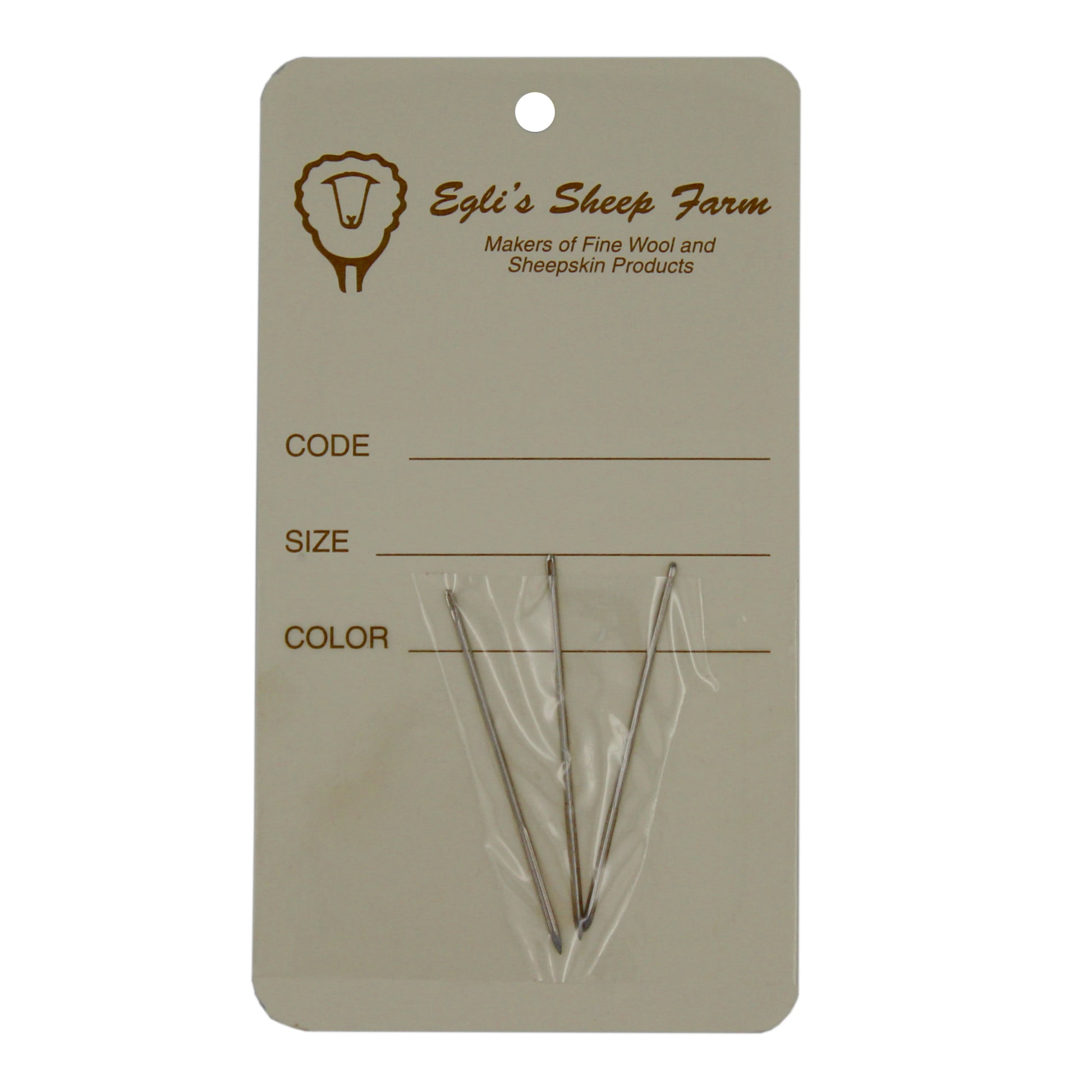 Glover leather needles used for sewing leather and sheepskin. Package of 3 needles. Each needle has a 3-sided point for easily stitching through leather. Needles are approximately 4.5cm (1.75") long.