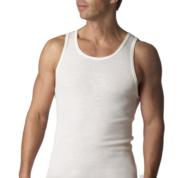 Wool underwear made in Canada by Stanfield's. Designed for absorbency, comfort, warmth and long lasting wear. Squared hemmed bottom. Taped arm and neck openings. Machine wash and dry. 90% superwash merino wool, 10% nylon.