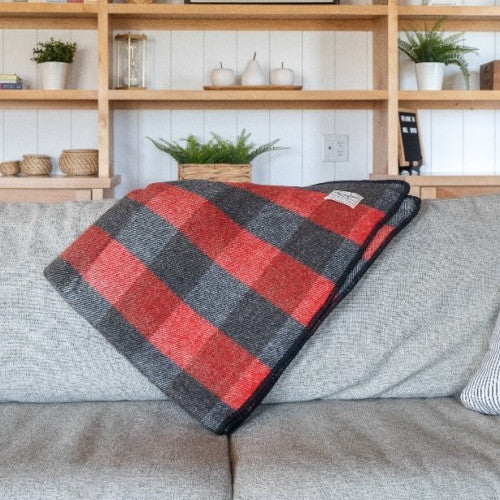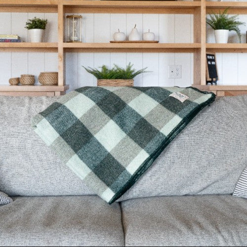 Medium weight 100% pure virgin wool blanket. Approximately 483 g/m2 (14 oz./sq.yd). Wash in cool water with low agitation and a mild soap. Lay flat to dry, shape while damp. Do not machine dry.