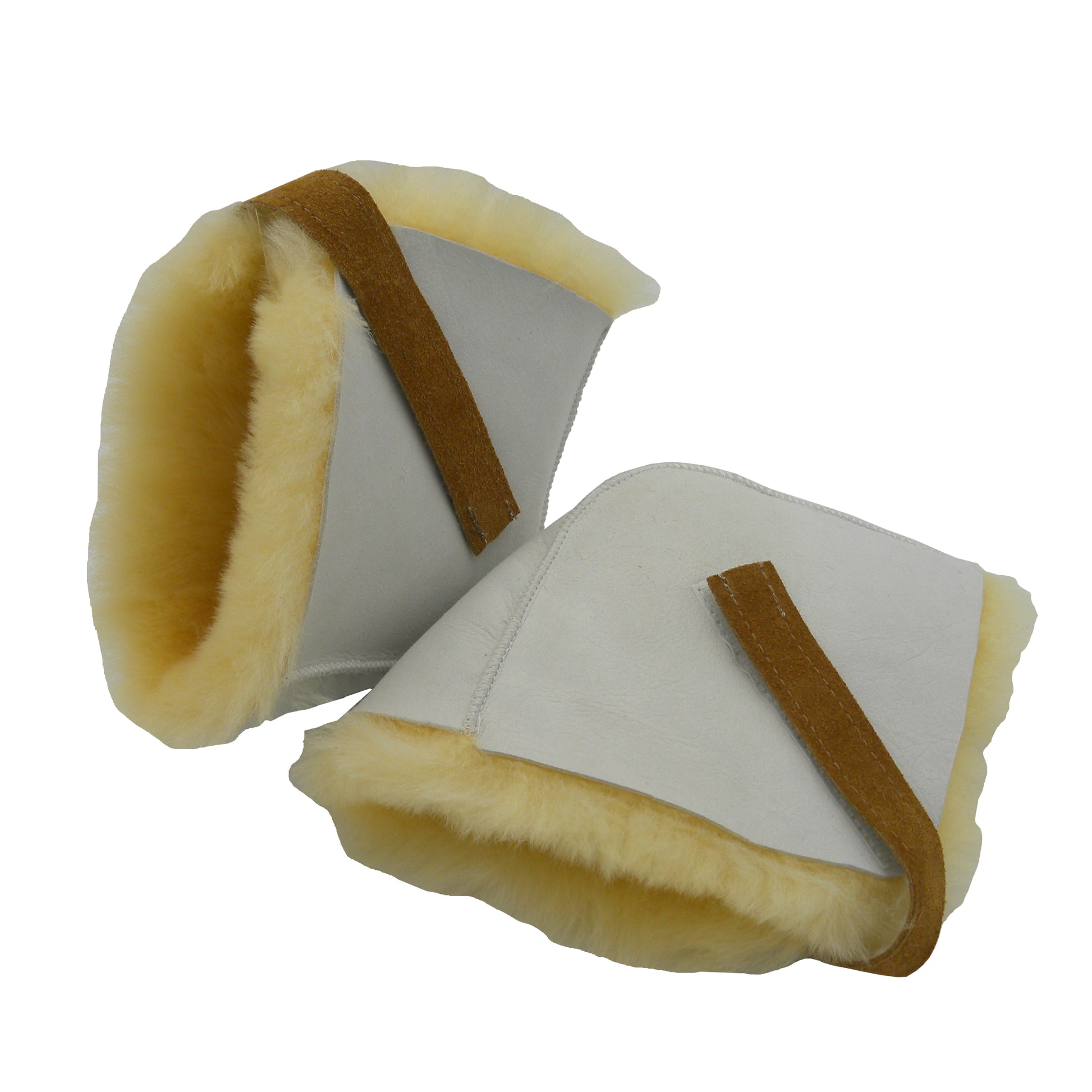 Genuine sheepskin pads attach around heels or elbows with Velcro® Brand closures on leather straps. These soft pads help protect heels or elbows from bed sores and an provide warmth and comfort. Priced per pair. Approximately 15 cm deep x 18 cm long (6" x 7"). Leather straps are 18 cm (7") long for an adjustable fit.