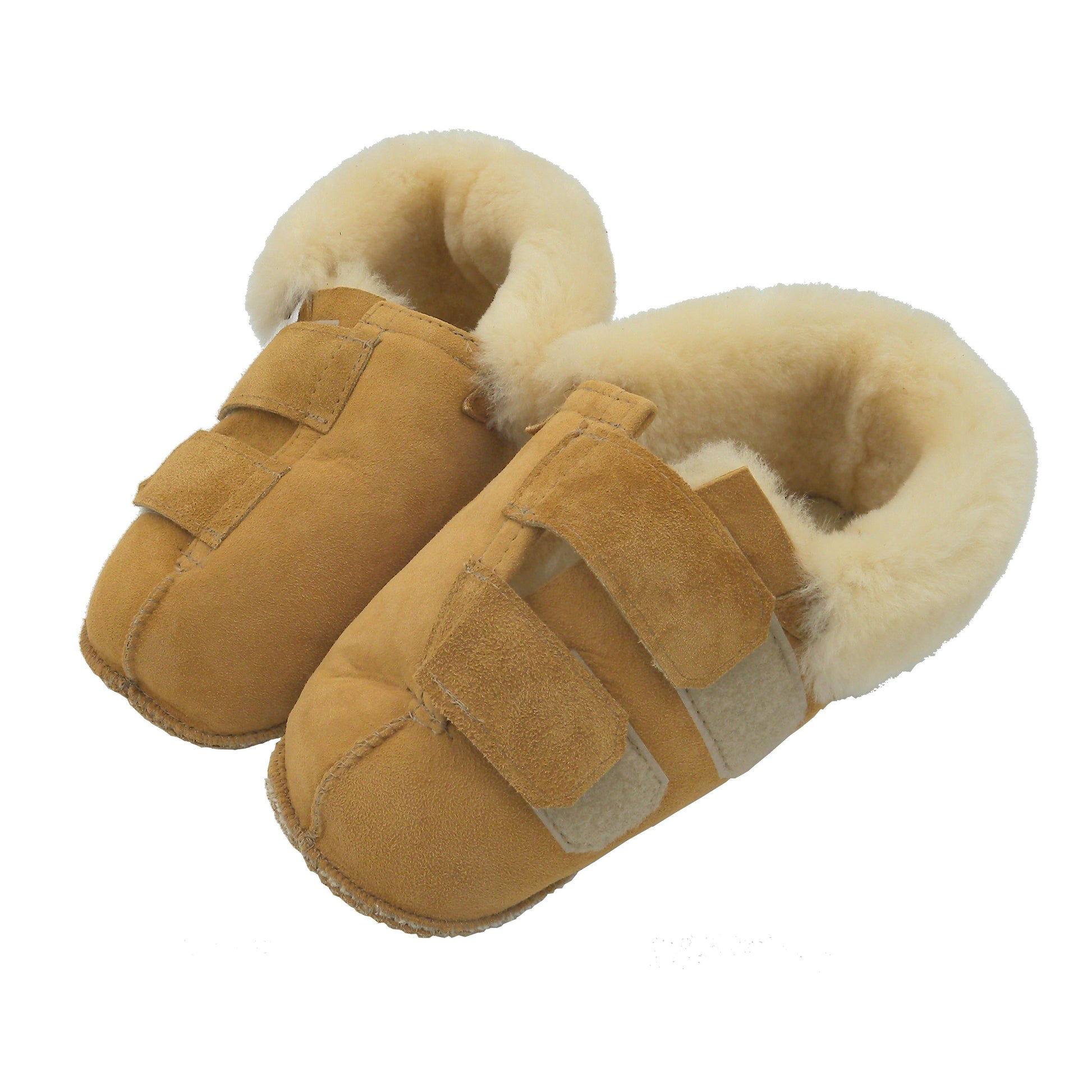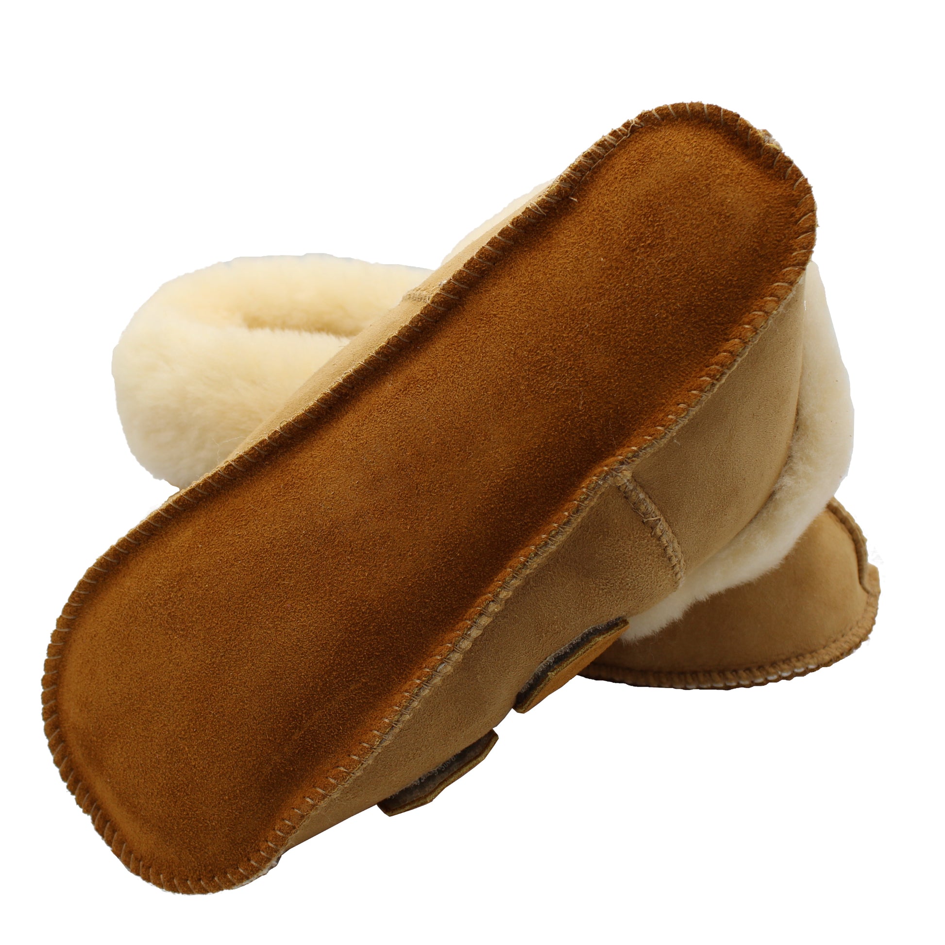 These sheepskin slippers are designed with warmth and comfort in mind for those with limited mobility. Made from genuine sheepskin, these slippers are ideal for those with swollen feet or high insteps. Wide foot openings with two Velcro® Brand closures to adjust fit. Shearling cuffs can be worn up or folded down. Genuine leather suede soles.
