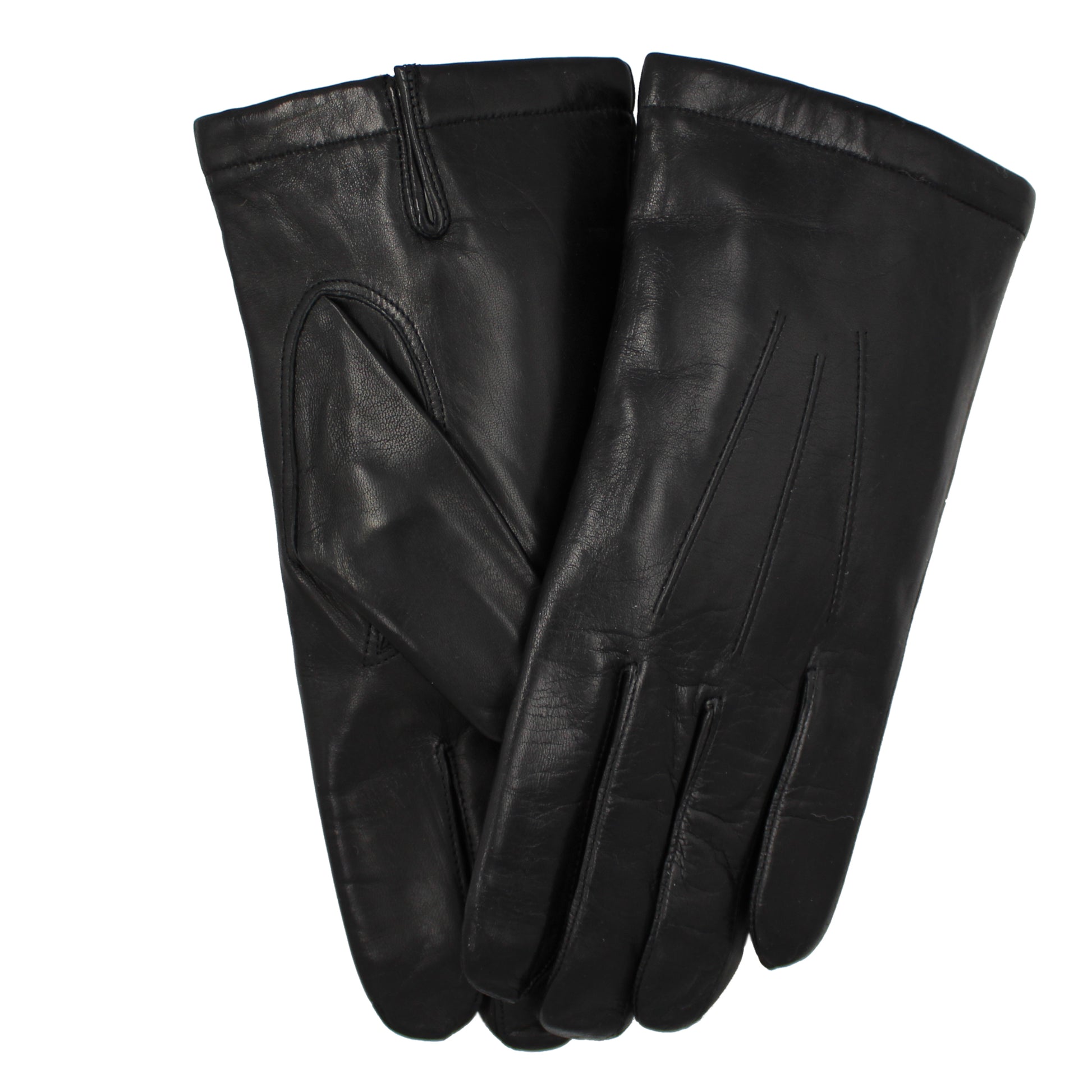 Men's genuine lambskin leather dress gloves with wool lining. Smooth leather finish with wool knit lining.
