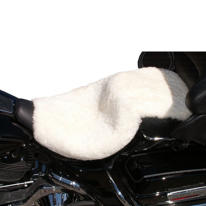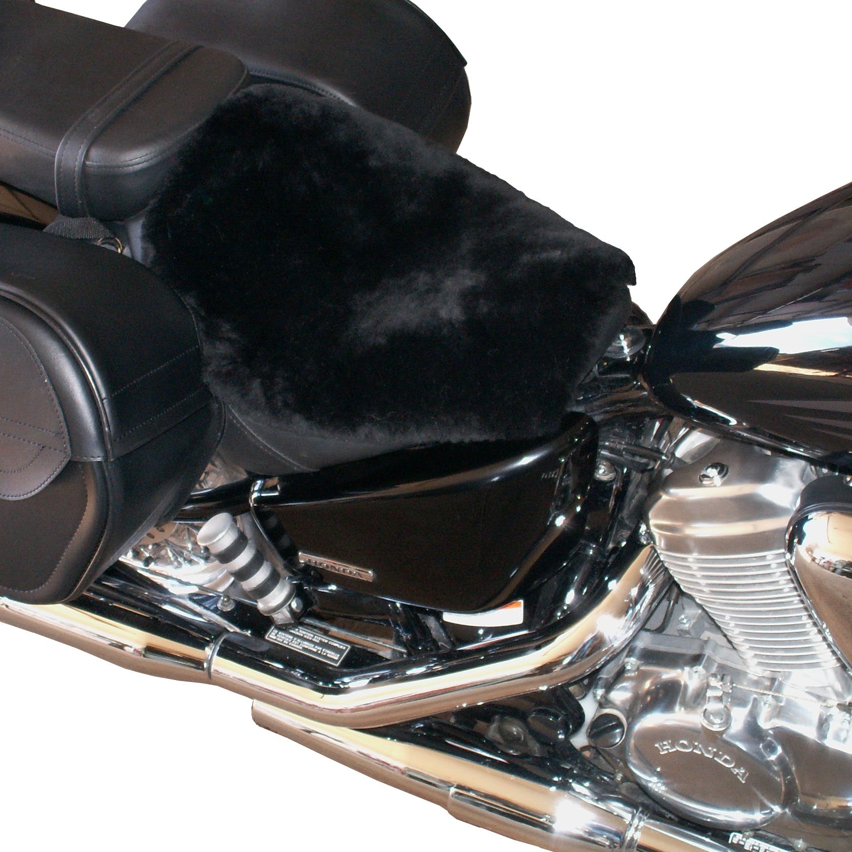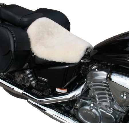 Soften your ride with shearling sheepskin! Our sheepskin motorcycle seat covers are designed to fit a wide variety of makes and models. Cover is held in place with adjustable nylon straps that fit under the seat.