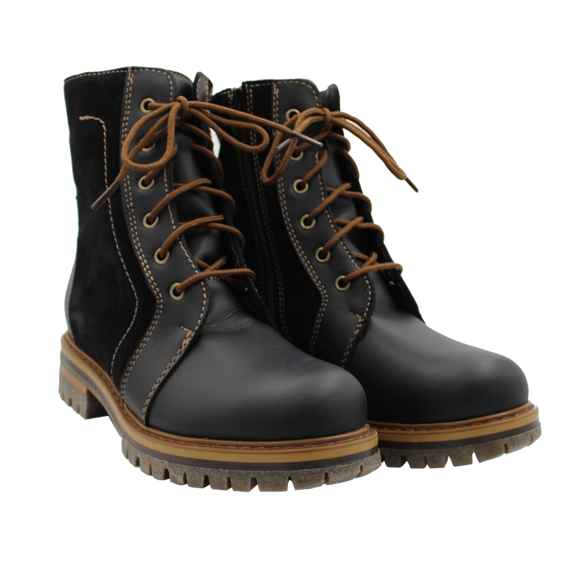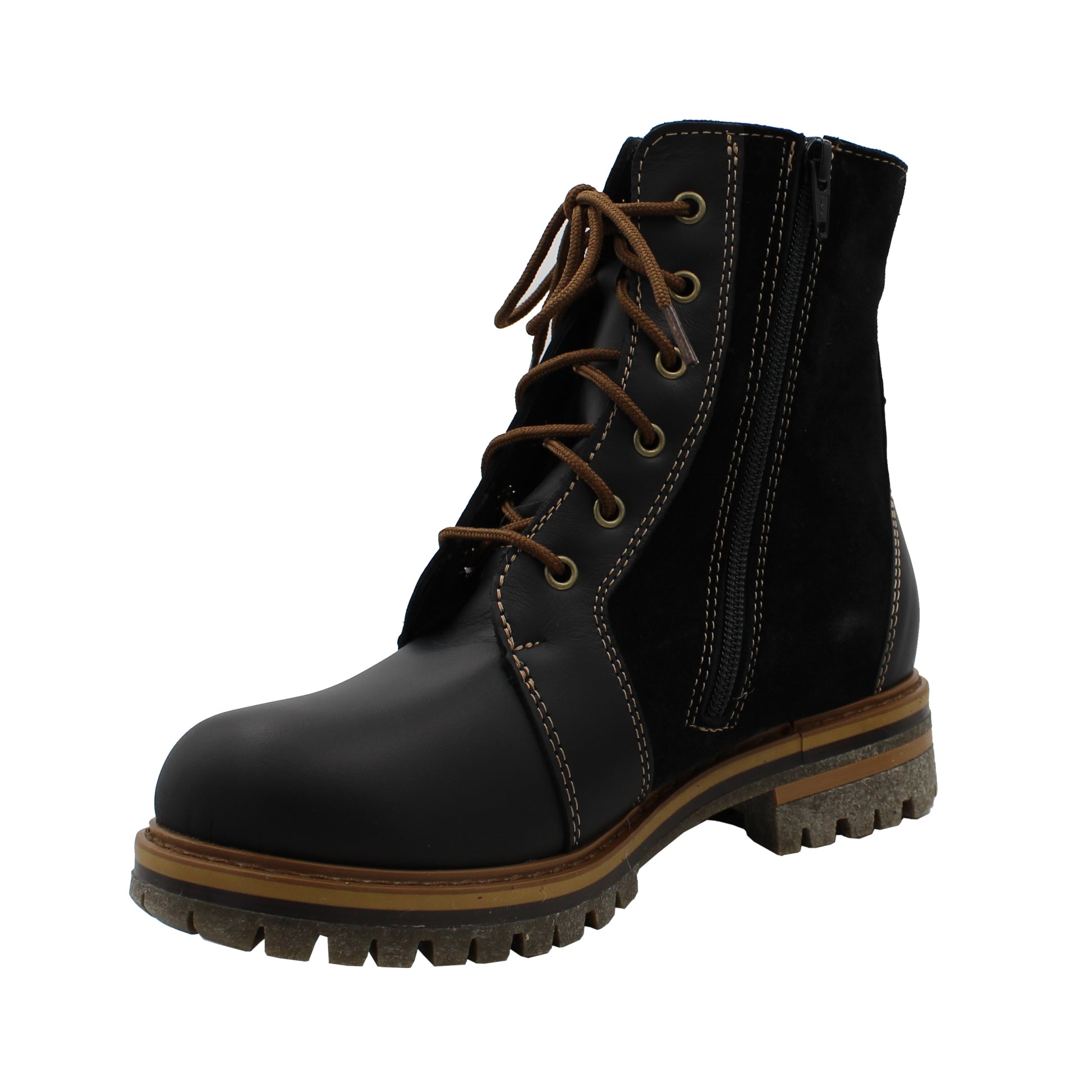 Women's short lace-up boot with 100% wool lining and Gigi sole. Watertight seams with multi-layered wool insoles. Convenient side zipper. Approximately 16.5 cm (6.5") tall.