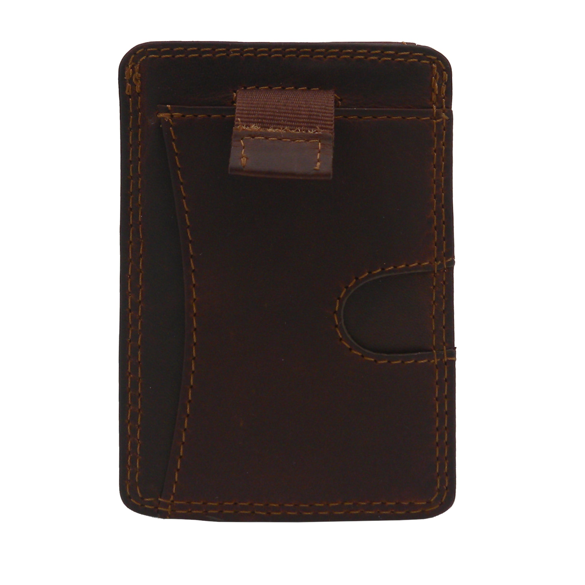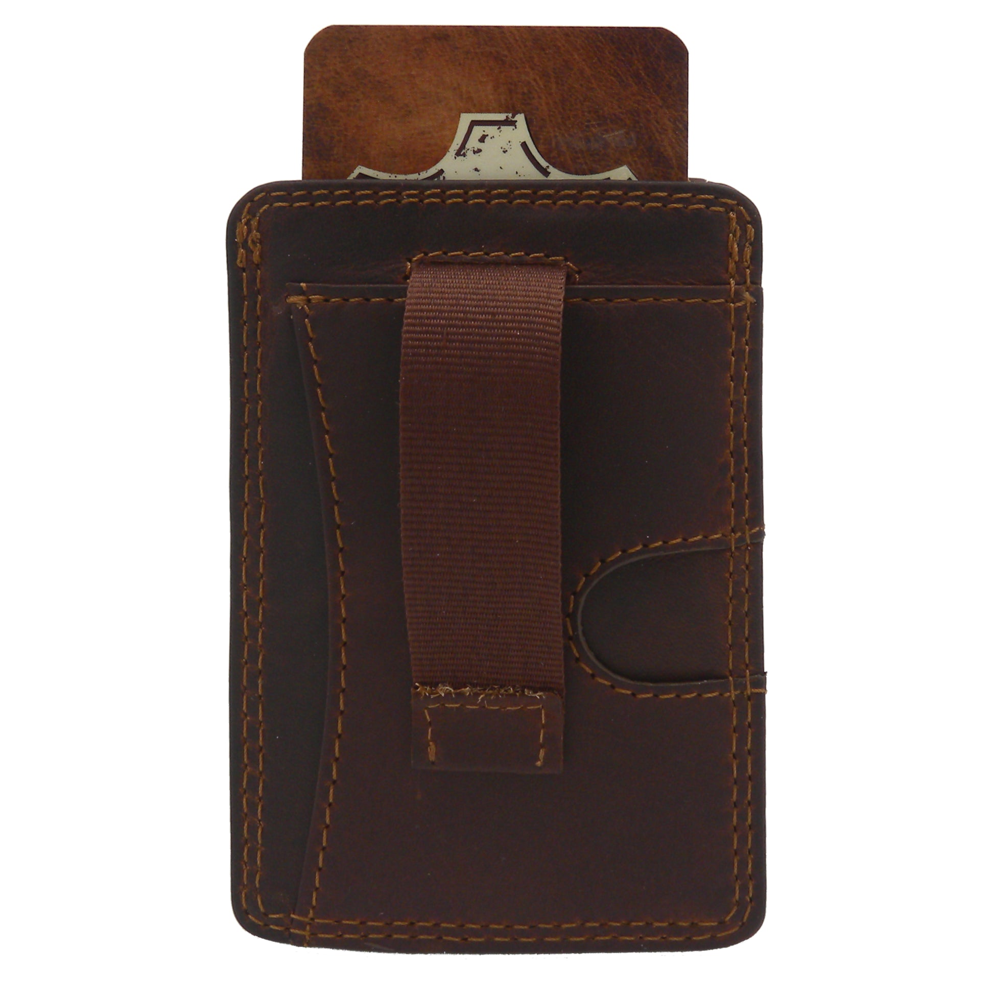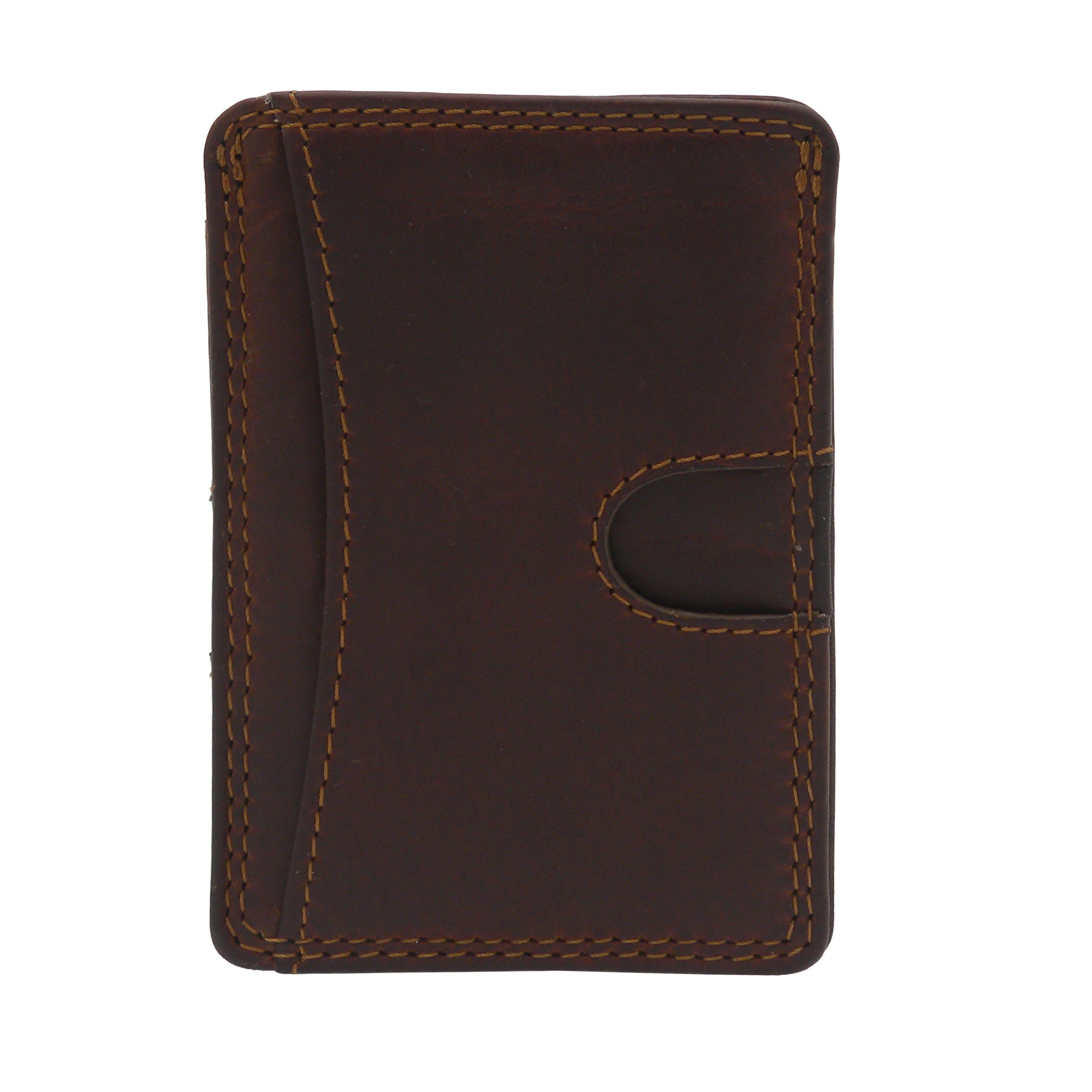 Rugged Earth wallet with two credit card slots and central slot with lift tab. Made with genuine leather and double stitched for durability.