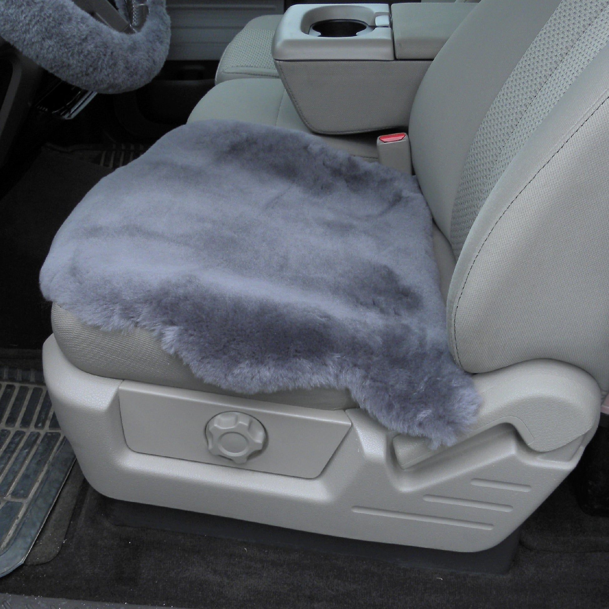 Naturally shaped shearling sheepskin approximately 45 cm x 45 cm (18" x 18") with a rounded top and flat bottom. 25 mm (1") wool length. Washing instructions included.
