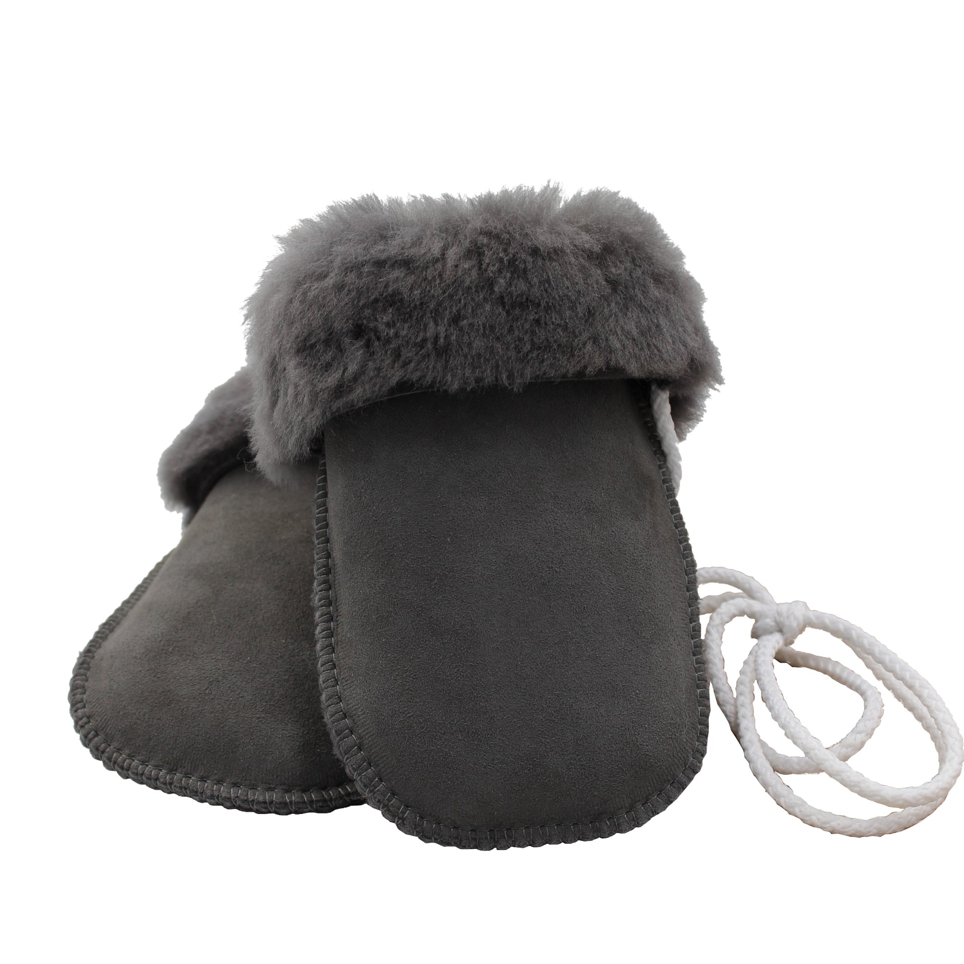 No more struggle to get that thumb in! These thumbless sheepskin mitts, with "Can't lose 'em" strings, are perfect for infants in cold weather outings. String is approximately 85cm (33.5") long, colour may vary. Cuff can be rolled down over jacket sleeves to keep out the wind and snow. Care information here.