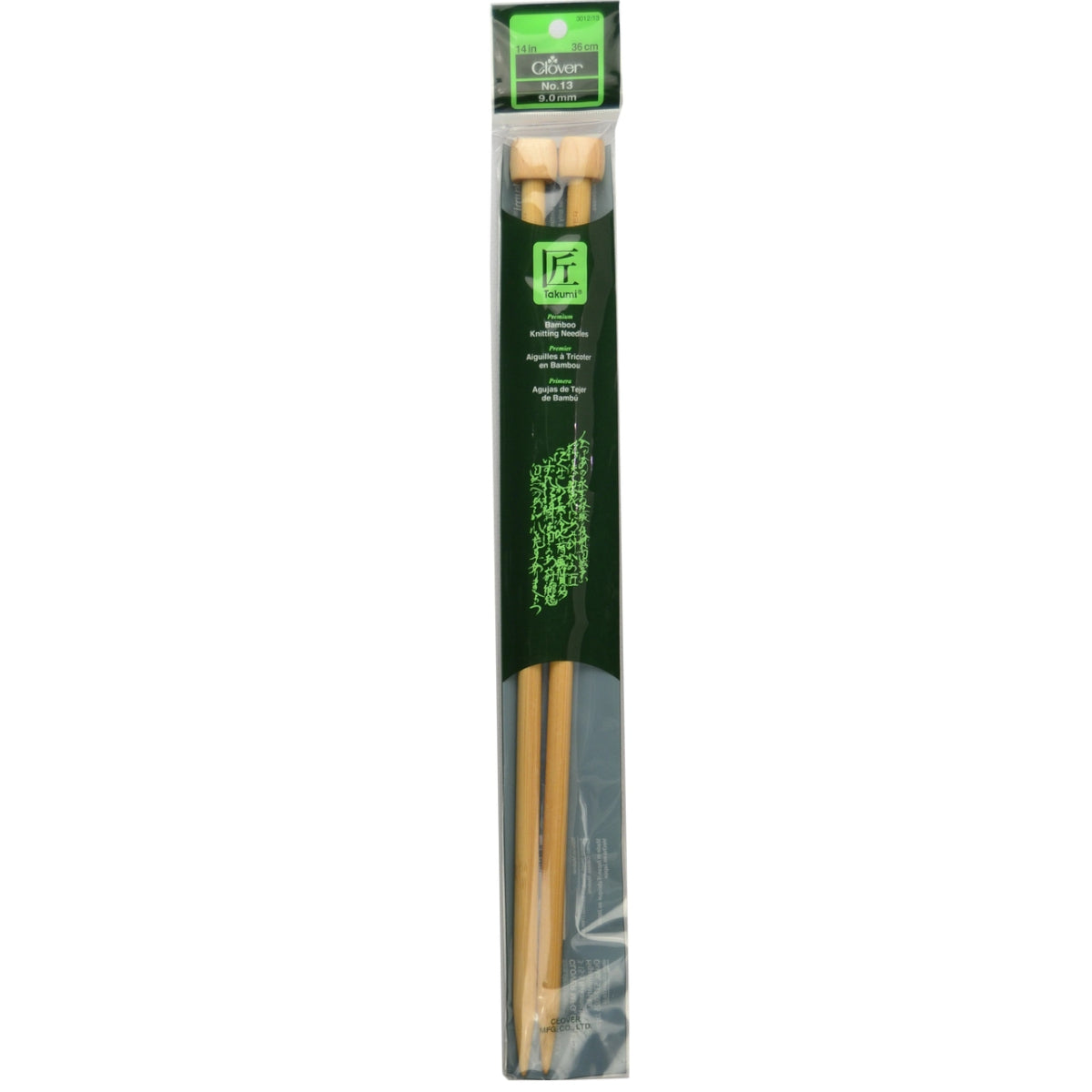 Set of two single point bamboo needles, 14" (36 cm) long. Lightweight with a warm, natural touch, bamboo is an ideal material for knitting needles. Size refers to width of needles.