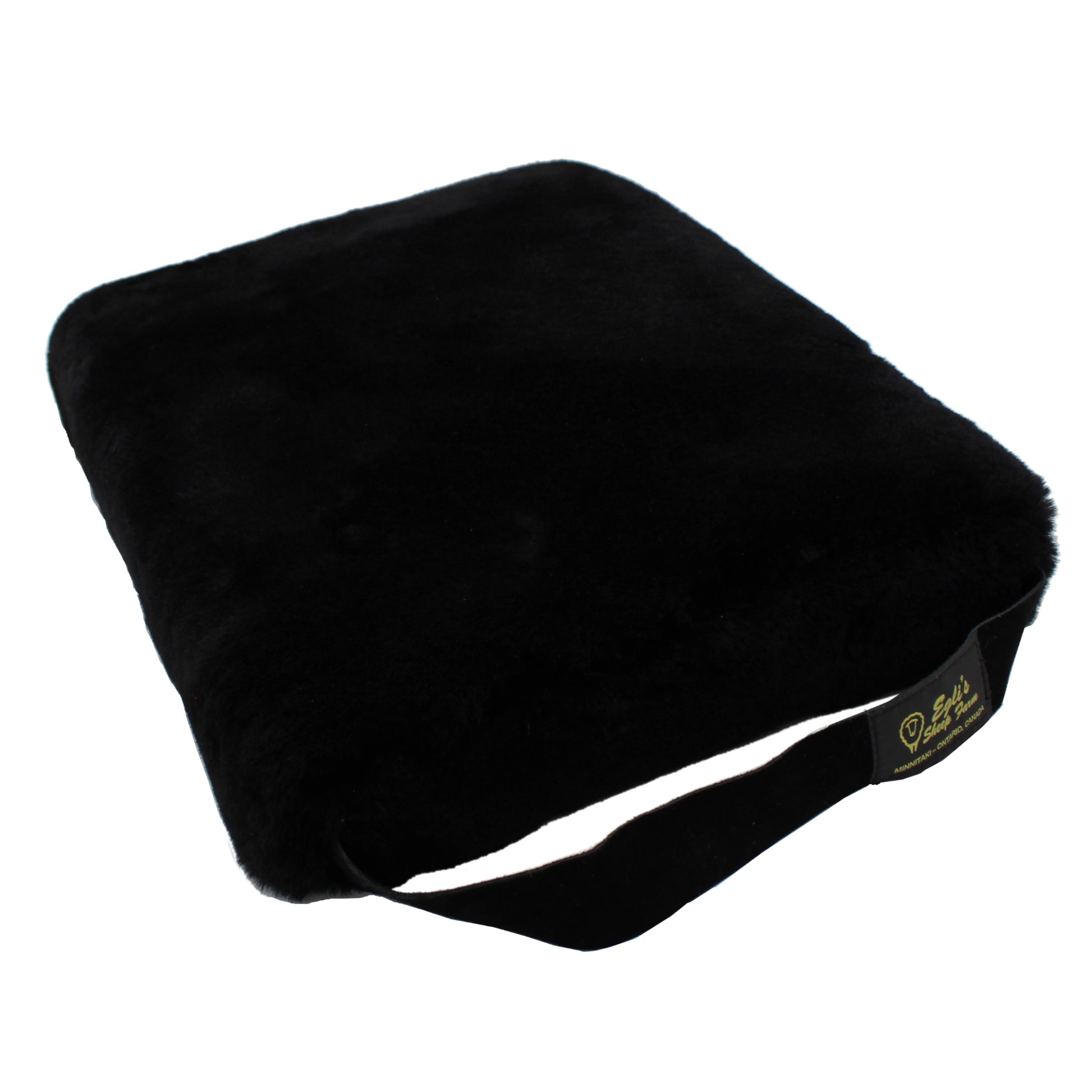 A comfortable cushion for sitting in the arena or grandstand to watch the game. Two inch thick foam is covered with shearling sheepskin for portable comfort. Polyester fill with vinyl backing. Handy leather carry strap. Approximately 30 cm x 40 cm x 5 cm (12" x 16" x 2"). Available in checkerboard pattern or solid colours.