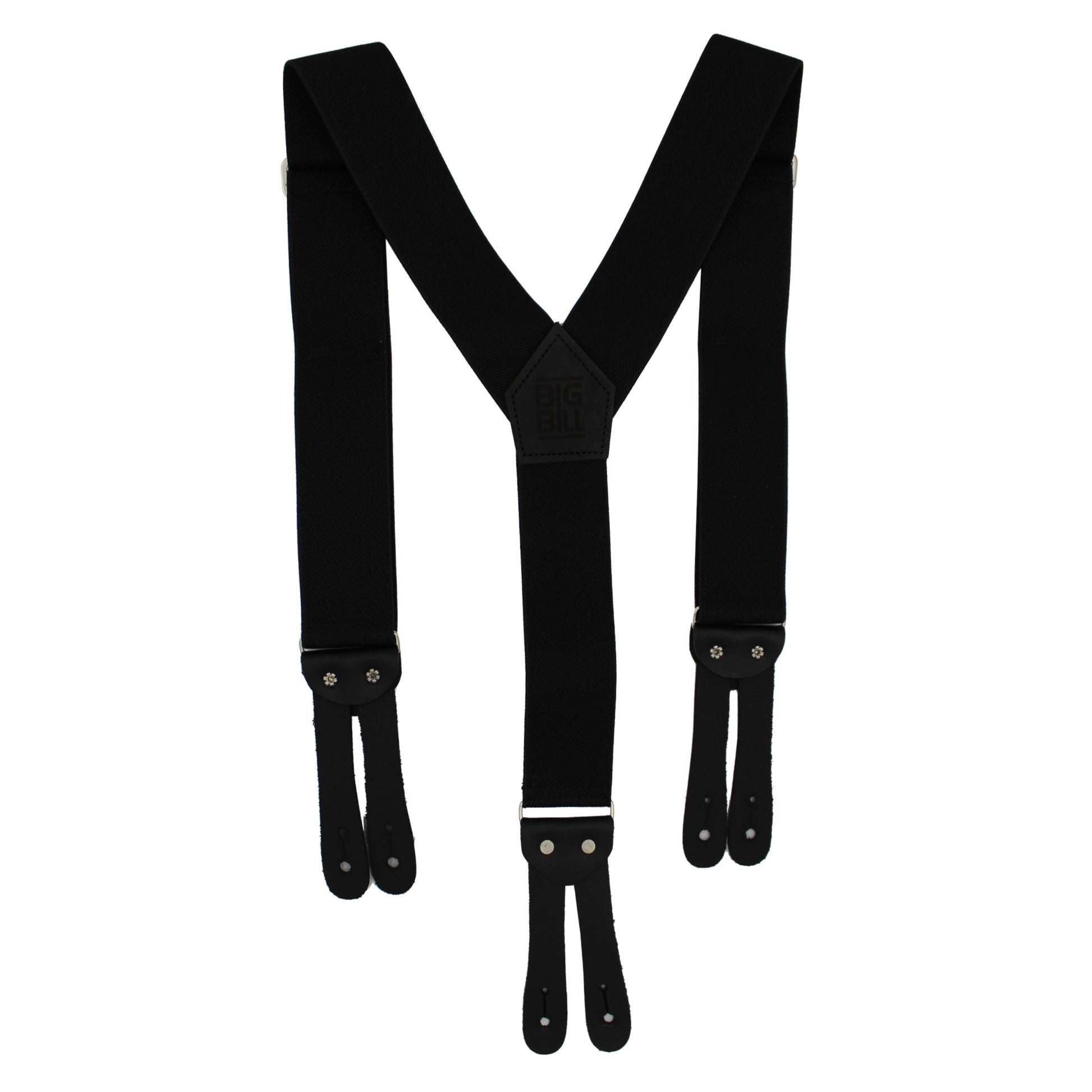 127 cm (50") heavy duty adjustable logger suspenders with "Y" back. Constructed with 5 cm (2") super tough elastic. Heavy duty flat leather ends to accommodate buttons. Can be worn with the 100% Wool Pants, 80% Merino Wool Pants, 75% Wool Pants and 6 Pocket Wool Pants.
