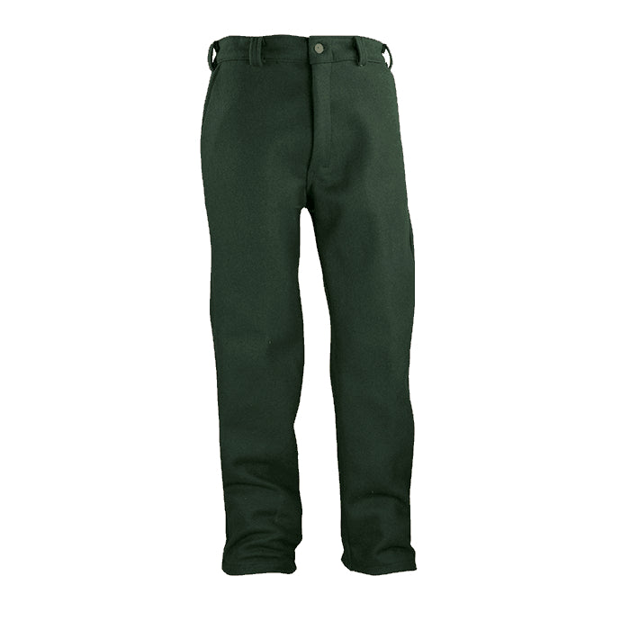 Durable and warm 24 oz. 80% wool pants have four deep pockets; two side pockets and two back pockets. Waist band has suspender buttons. 33" inseam.